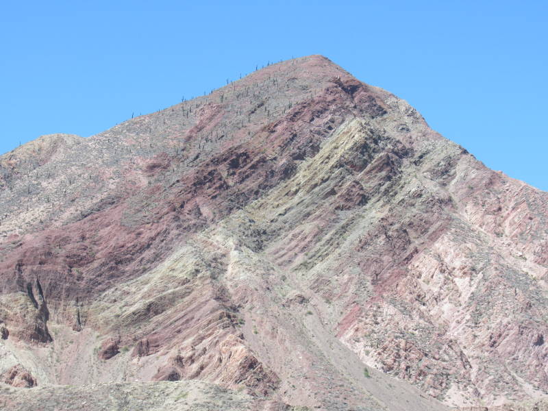 Vanmorgen om 9 uur vertrokken naar Quebrada de Humahuaca. Prachtige rit, super mooie bergen echt super. Het lag op 4350 meter hoogte, dus ons autootje had best wat moeite om omhoog te komen. In Europa ligt er op deze hoogte sneeuw, hier was er in de verste verte geen sneeuw te bekennen. Nu hebben we echt geluk gehad met het weer, want ze hadden veel regen opgegeven. Vervolgens in Humahuaca een beetje gesnackt, weer empanadas op. Die zijn echt heel erg lekker!