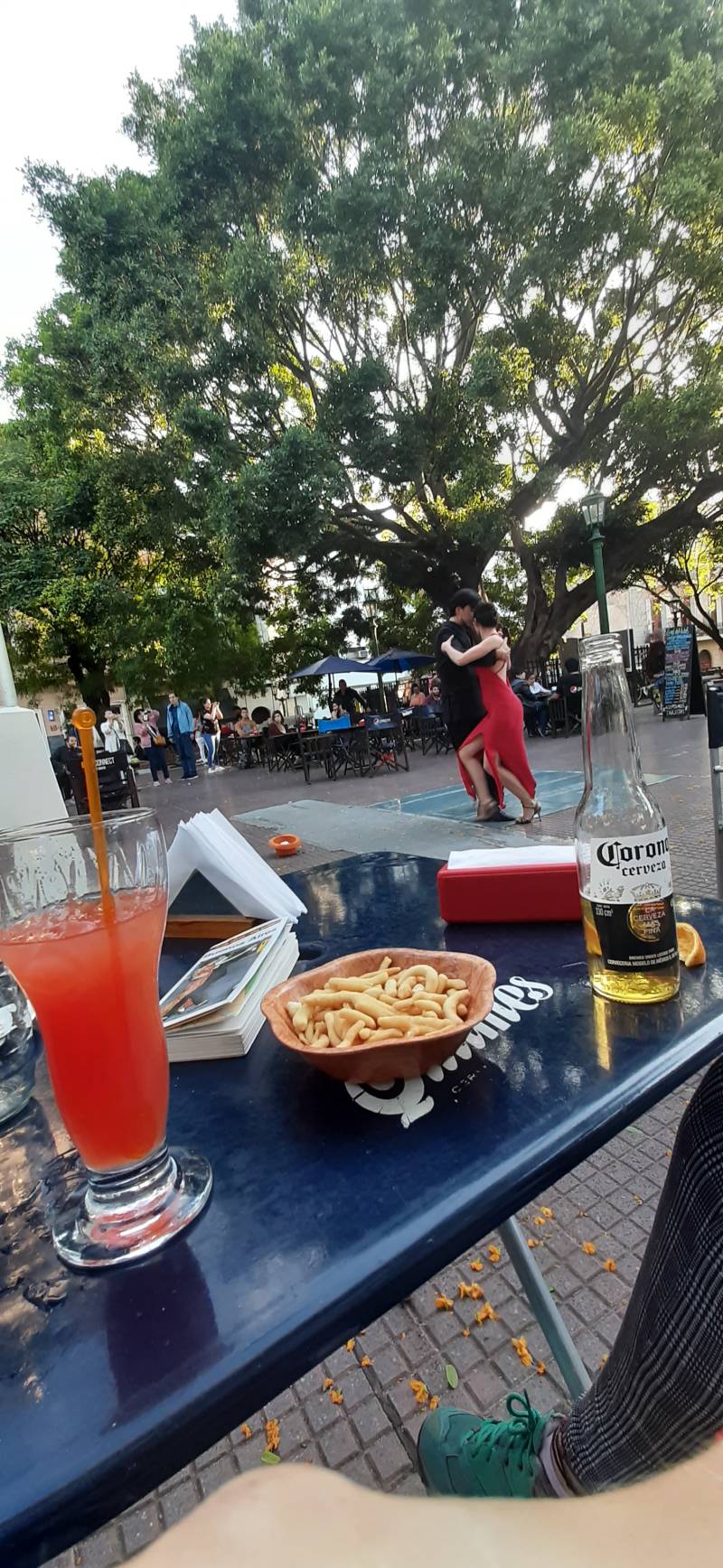 Na al een lange wandeling door dit park heen, doorgetrokken naar La Boca. Onze voetjes waren al erg moe, maar we wisten niet welke straat de huisjes waren. We kwamen aan de arme kant van de wijk binnen, dus ook niet echt de mogelijkheid om uitgebreid op onze telefoons te zoeken. In ons beste Spaans diverse malen gevraagd naar 'donde a las casas colores, por favor'; 'Waar zijn de gekleurde huisjes, alstublieft. Vast niet goed geschreven, en niet goed uitgesproken, maar hakkelend zijn we er gekomen:) Helemaal moe, dus eerst maar genieten van een lekkere smoothie. Die bleek achteraf een beetje duur, maar hij was zeker lekker haha;). Het verschil tussen arm en rijk blijft me verbazen. De afgebladderde verf, tralies voor de deuren en de ramen en alles potdicht tegenover kleurrijk, leven op straat en gezellige terrasjes. Wat je wilt zien als toerist zie je, maar er is veel meer op de achtergrond.