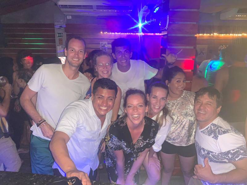 Stephanie, iemand van de duikschool die daar haar master deed, had ons uitgenodigd voor haar verjaardag. Voordat we hierheen gingen hebben we genoten van wat lokale dans die vlak voor de bar in volle gang was. Jong en oud, alles liep door elkaar. Heerlijk! 's avonds verjaardag gevierd in de pub. Mensen van de duikschool hadden een hele taart laten maken, dus dat zag er super tof uit.