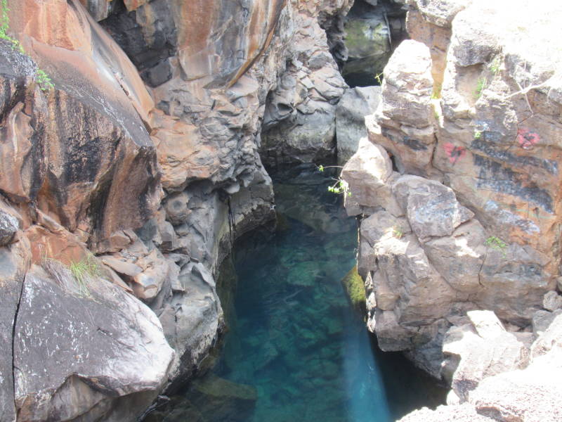 Lekker uitgeslapen vannacht en onze snorkel spullen ingepakt om naar Las Grietas te gaan. Met een klein motorbootje word je voor 80 cent per persoon naar de overkant gebracht, waar je vervolgens nog een half uurtje moet lopen naar Las Grietas. Dit is handig om op bergschoenen te doen, aangezien de vulkaan grond vol rotsen en scherpe punten zat. Heel handig dus dat wij zelf op slippertjes ons best hebben gedaan om er te komen, haha. Net voor de afslag naar Las Grietas (rechts) kon je ook naar links, al was het slecht te zien. Dit pad bracht ons naar de bovenkant van de kloof, en gaf een prachtig uitzicht. We konden over het hele dorpje Puerto Ayora van Santa Cruz kijken. Aan de andere kant de kloof met prachtige rotskleuren en helderblauw water. Heel mooi. Toen we afdaalden in de kloof was het vrij druk. We hebben een tijdje gewacht en hadden vervolgens de kloof en het water zo goed als voor onszelf. Heerlijk! Zeker in de schaduw was het water erg koud. We hebben een hele grote vis gezien en wat kleinere. Heel erg mooi, inclusief de wandeling!
