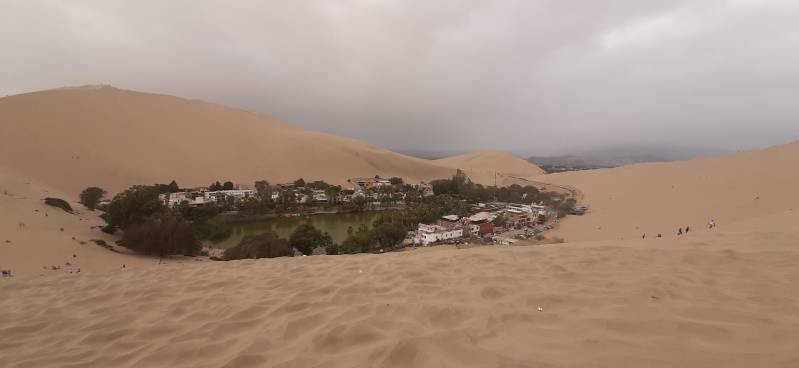 De oase van Huacachina is ongeveer zo'n 3,5 km van het stadje Huacachina verwijdert. Hier bevind zich ons hotel. We zijn vandaag het stadje in geweest en een beetje rondgelopen. De temperaturen lopen met gemak op tot rond de 35, dus in de middag is het niet meer te doen om buiten te lopen. We zijn dus na de ochtend nog even naar ons hotel gegaan om een beetje gebruik te maken van de Wi-Fi. Om half 7 in de avond worden we opgehaald om naar onze volgende bestemming. Paracas te gaan. Paracas, of eigenlijk de Ballestas Islands, word ook wel de poor mans Galapagos genoemd. We kunnen hier een speedboat nemen om om de eilanden heen te varen en diverse dieren te spotten. Dit gaan we zeker doen.